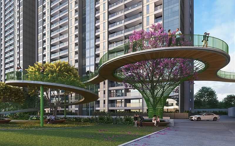 Pristine O2 World in Kharadi, Pune, offers 3.5 BHK apartments with a carpet area of 1393 sq. ft., priced from ₹1.90 crore. These homes are part of a 20-acre development featuring G+25 towers and over 40 amenities, including a swimming pool, clubhouse, and gymnasium