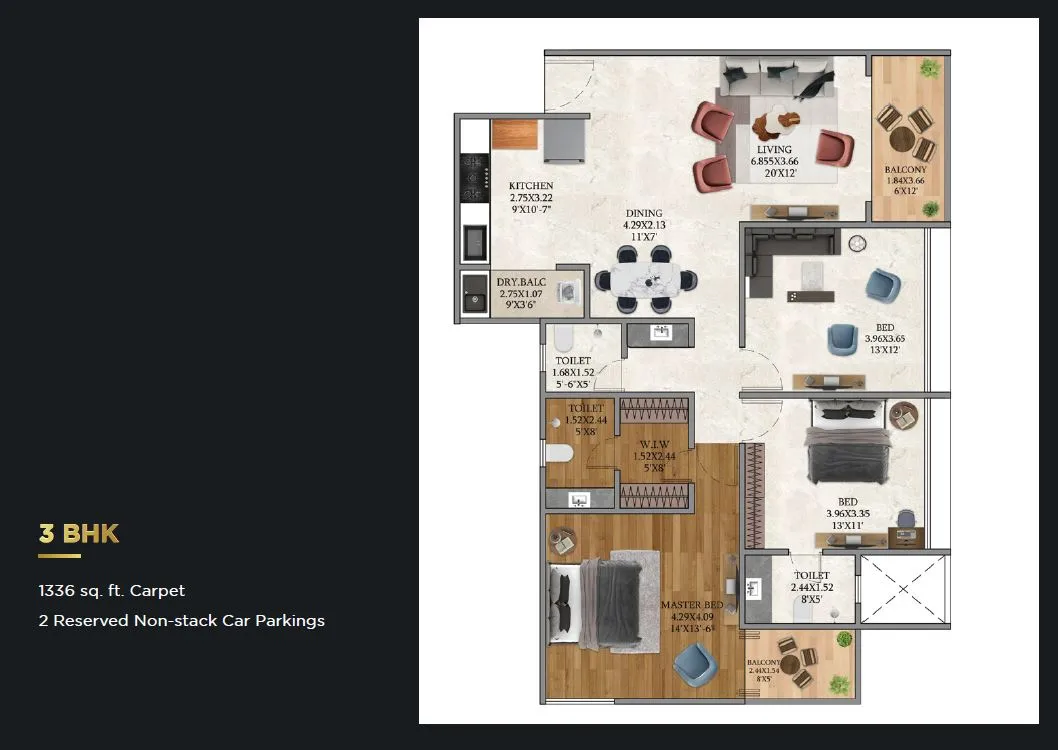 | SSPL The Strand 3BHK Apartment | 1336 sq.ft.-1400 sq.ft. | Rs. 2 Cr onwards |